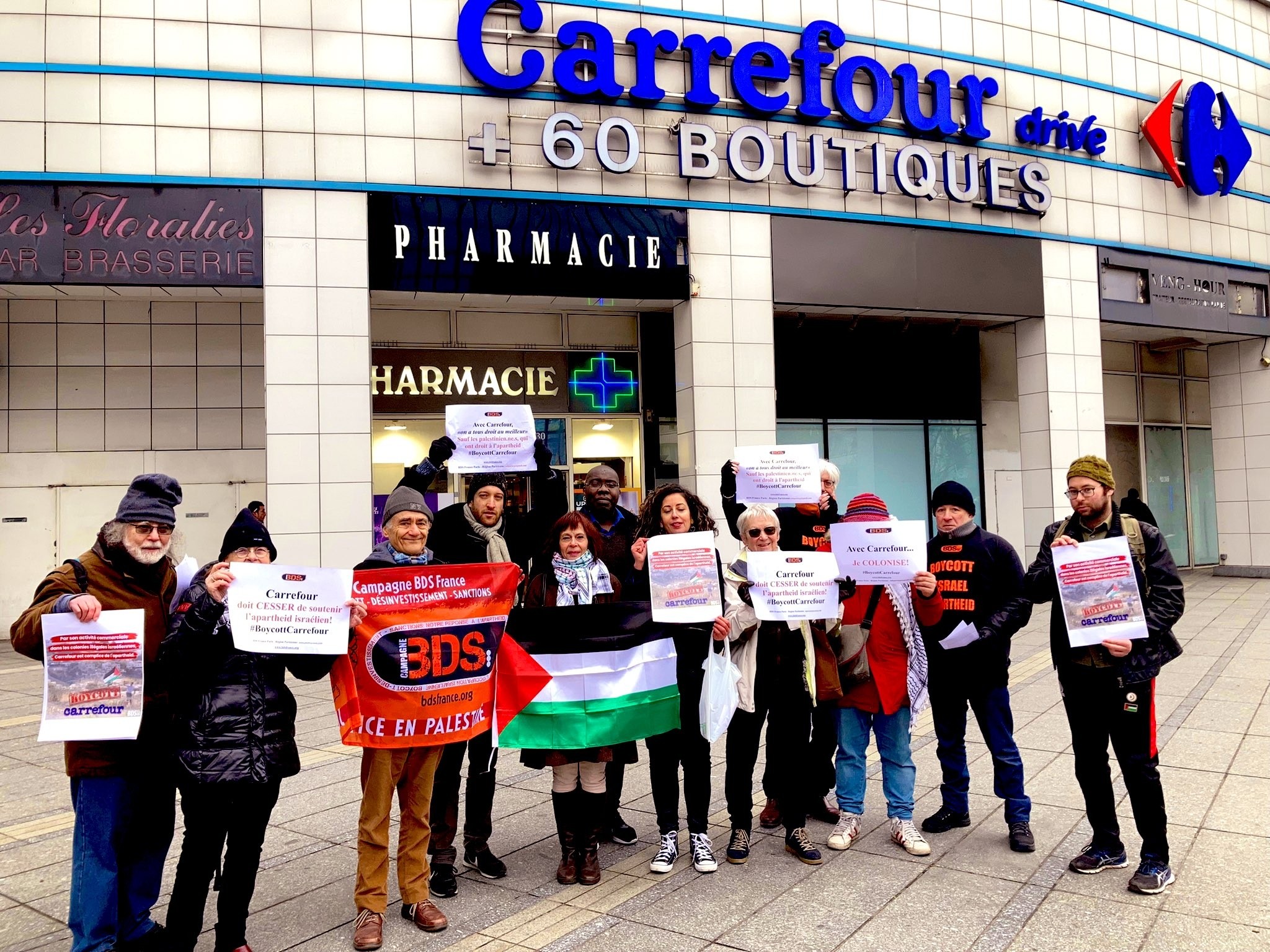 و"كارفور" مجموعة تجارية فرنسية مشهورة لها أفرع منتشرة في المستوطنات الإسرائيلية المقامة على الأرض الفلسطينية، وهو ما اُعتبر تجارة معززة لمشاريع الاستيطان "غير الشرعي" ودعم منتجات المستوطنات التي تُباع في متاجر المجموعة حول العالم.